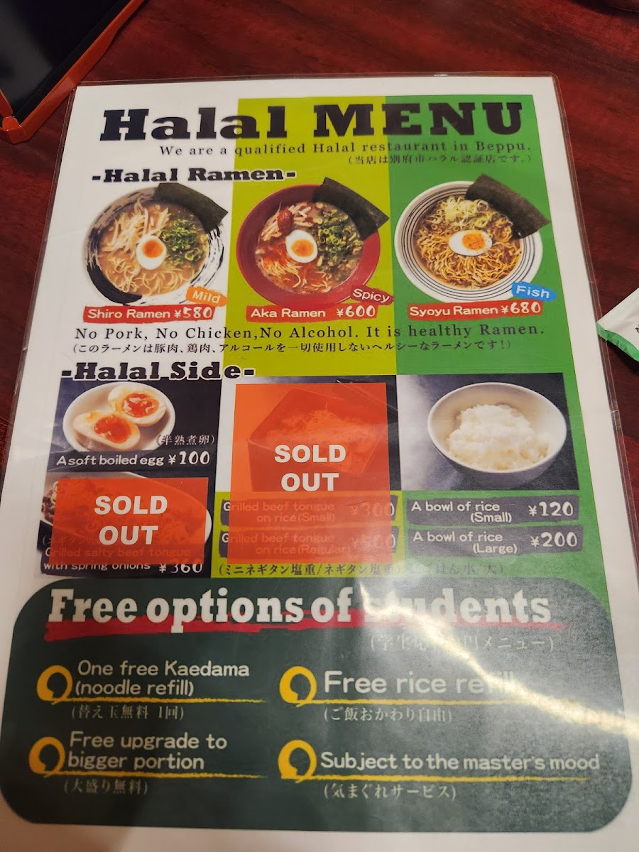 Introducing Itto-ryu Ramen, a hidden gem located in the heart of Beppu, Oita, renowned for its authentic ramen offerings. The menu features a delightful array of options, including the rich and flavorful 熟成とんこつ (aged tonkotsu) and enticing halal ramen selections. For just JP¥580, the Shiro Ramen and spicy Aka Ramen provide a healthy twist, free from pork and chicken, making them perfect for halal diners.